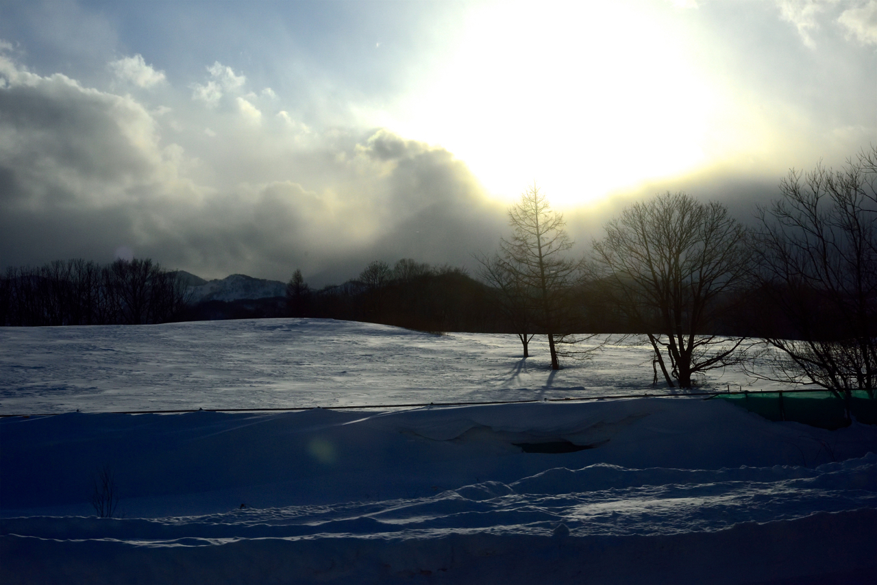 以下的景色算是夕陽西下的山間雪景。